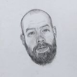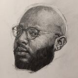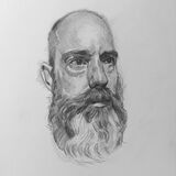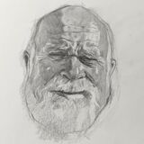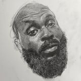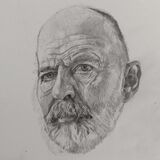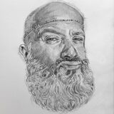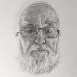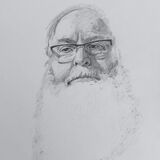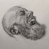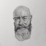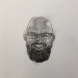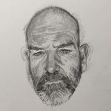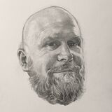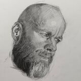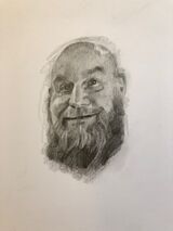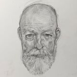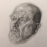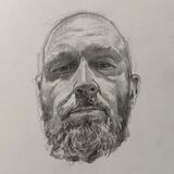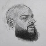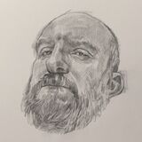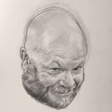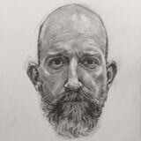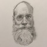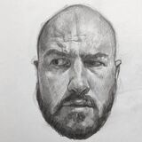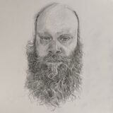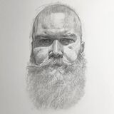 This series of (actually a little over) 100 portraits came about during one fo the Covid lockdowns where I became tired of drawing myself, so thought it would be fun to put a social media callout for people with the same basic look as me; bald head and beard. What started out as fun, became quite an interesting mini survey of men and really appealed to me because of my interest in masculinity and how this is performed by men. The beard comes in and out of fashion, and is almost exclusively the proviso of men. It's not everyone's favourite look, but is often linked to ideas of visibility and masculinity. Facial hair is also sometimes political and sometimes contentious. Beards have a symbolism, and therefore meaning, that can be deployed voluntarily. Baldness on the other hand is typically not-optional and has negative connotations of being symbolic sometimes of a loss of virility. I love this combination. The series was exhibited as a single work in the 2022 Contemporary British Portrait Painters' Exhibition.